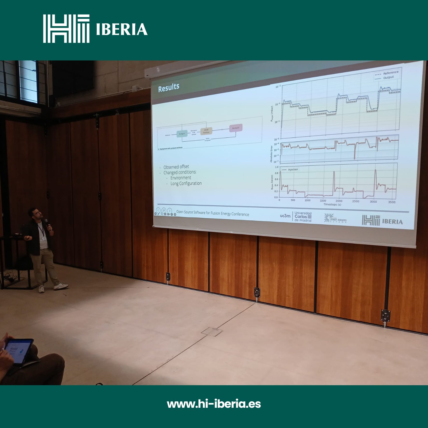 ⚛️ Last week we joined the "Open Source Software for Fusion Energy" Conference (#OSSFE) in Munich. Guillermo Rodríguez Llorente presented DONES-FLUX results, showing how AI helps control the MuVacAS high-vacuum prototype for @IFMIF_DONES. #FusionEnergy #AI #HiIberia