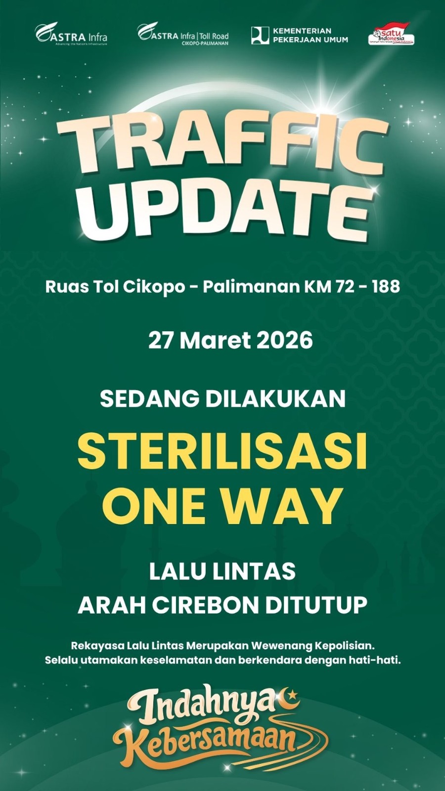 #ArusBalik2026 #OneWay #MudikLebaran #InfoLaluLintas #KorlantasPolri