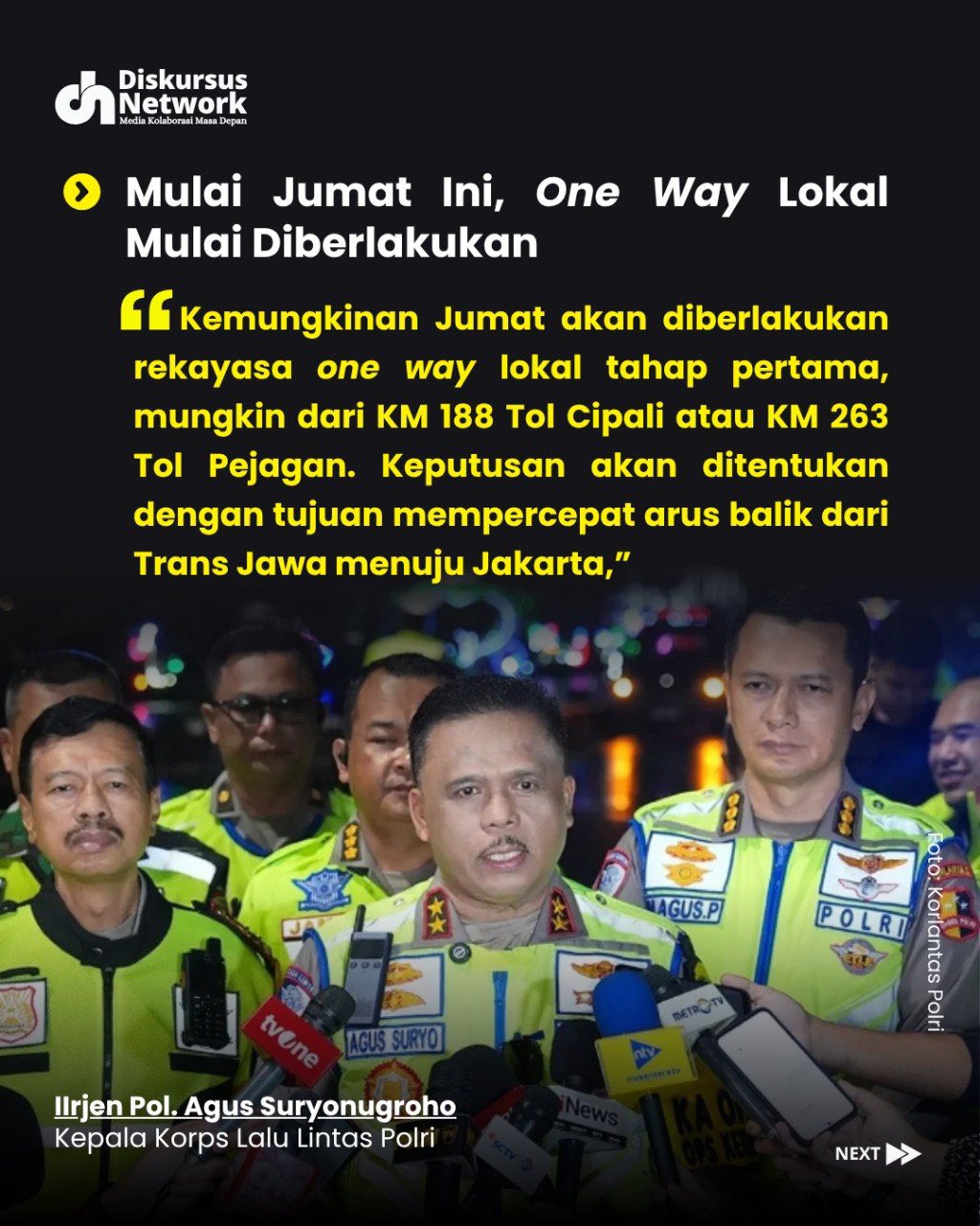 Pantau Terus Informasi sistem One Way di @korlantaspolri.ntmc