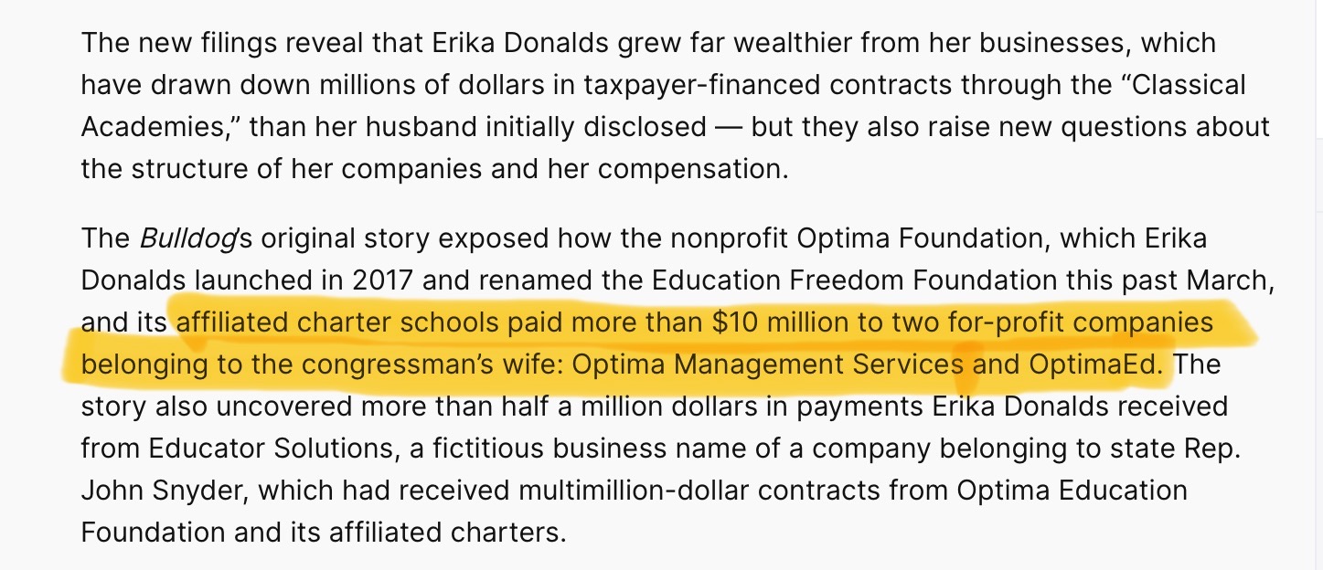 @DeAngelisCorey @DAngelisMiranda @XAVIAERD @ErikaDonalds Wait’ll democrats start using Erika #Optima #CharterSchool #Fraud #ByronDonalds for why you CAN’T TRUST A SYSTEM LACKING OVERSIGHT, because UNSCRUPULOUS THIEVES will take “Management Fees” and NEVER open the school. Erika will singly DESTROY charter school momentum. #NeverByron