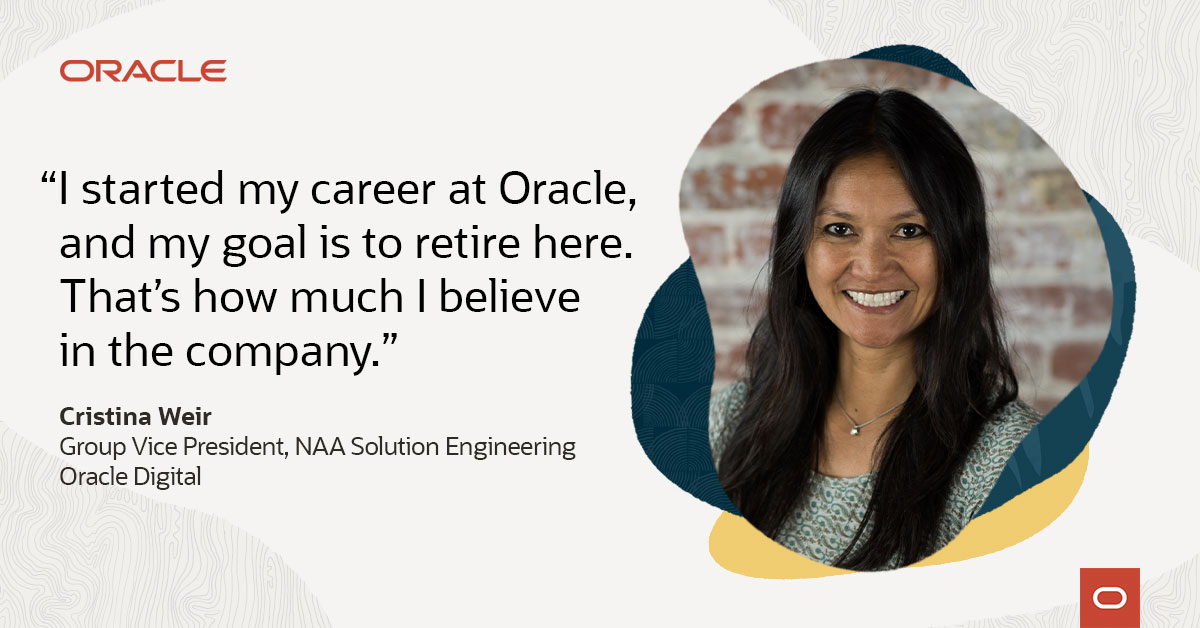 It’s so rewarding to grow my career at a company with leaders like Cristina Weir, who is driving success in business and fostering inclusion and balance in our community. Read her story at social.ora.cl/6011CL4kU#OracleWomenLead#OracleForAll