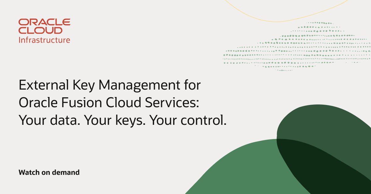 Take control of your encryption keys in the cloud. Join this session to learn how External Key Management (EKMS) helps customers strengthen data security, privacy, and compliance in Oracle Fusion Cloud Services: social.ora.cl/6018Cch9A#OracleForAll#OraclePartners#Developers