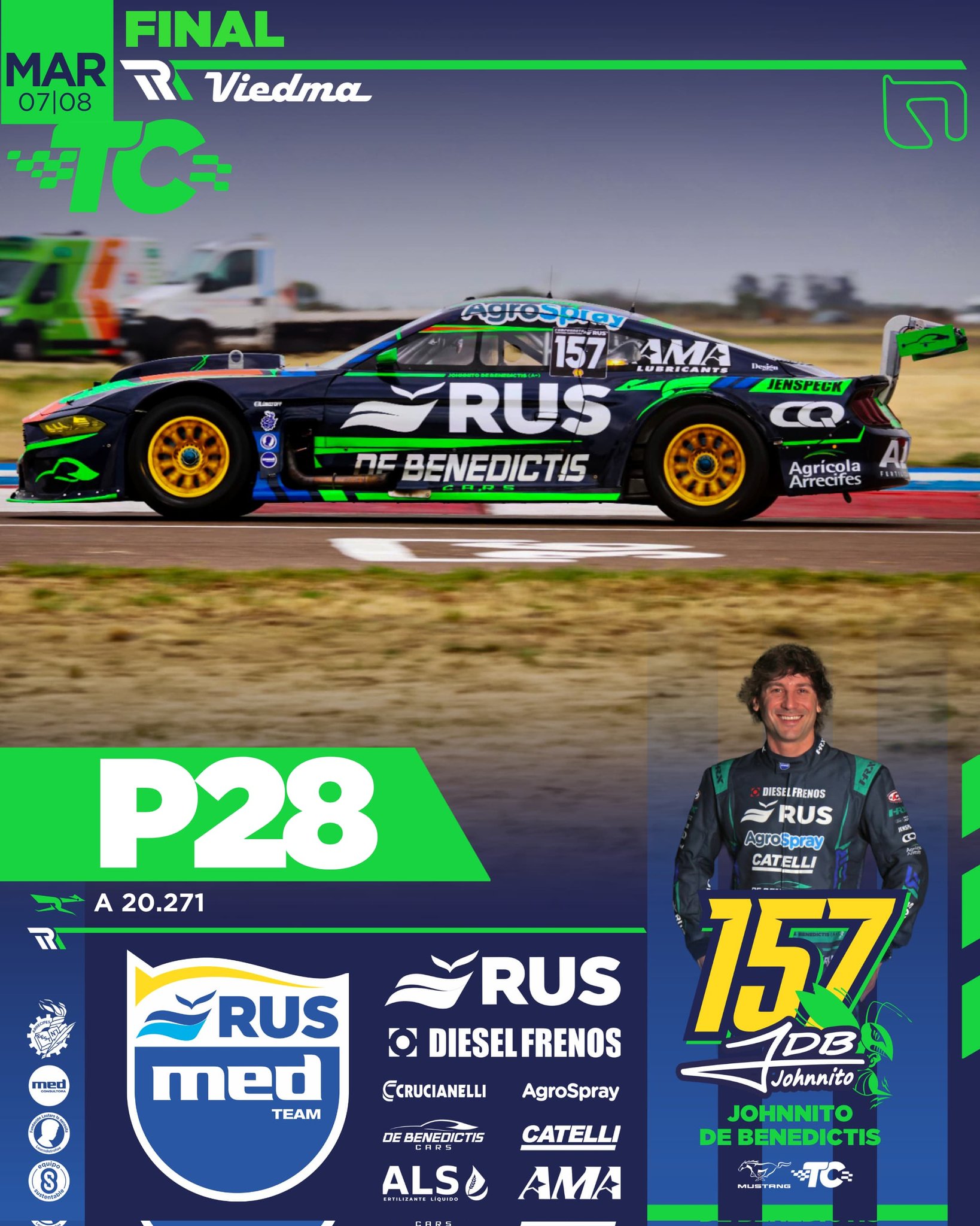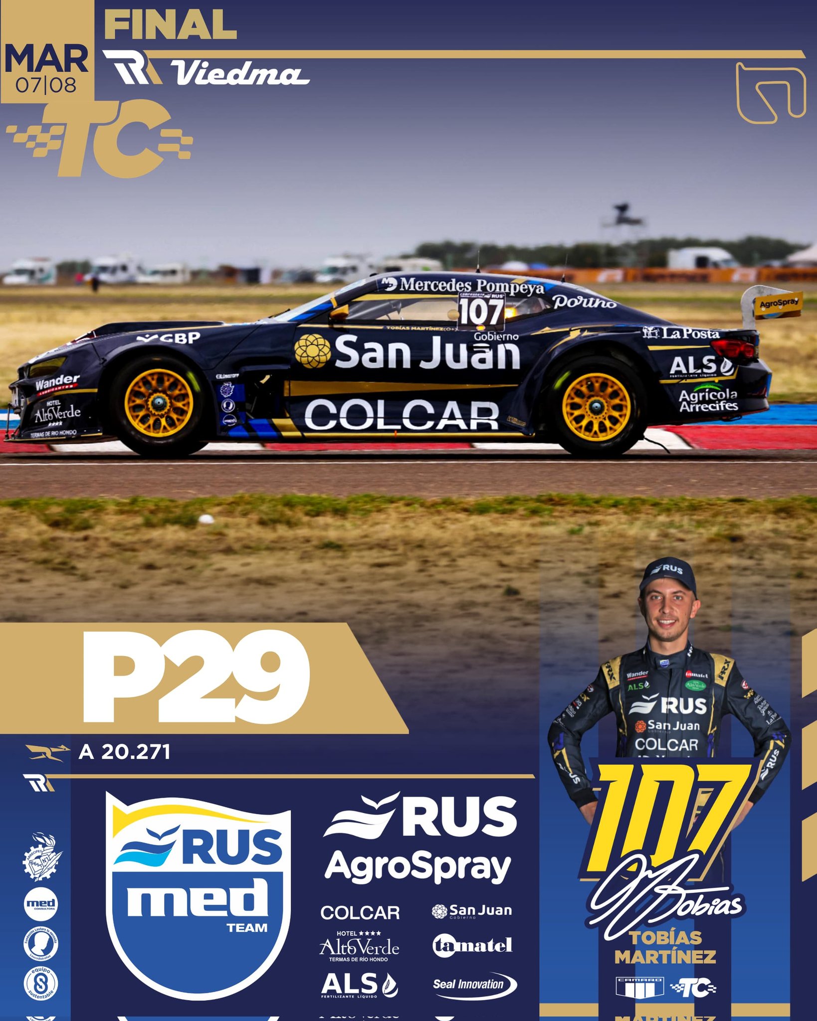 Un toque desafortunado e involuntario entre Tobías Martínez y Juan Bautista De Benedictis dejó Jhonnito lejos en el pelotón, pudiendo luego recuperar hasta el P28. Tobi se mantuvo siempre en vanguardia y arribó en pista #P9, pero por el toque fue recargado y reclasificado al P29