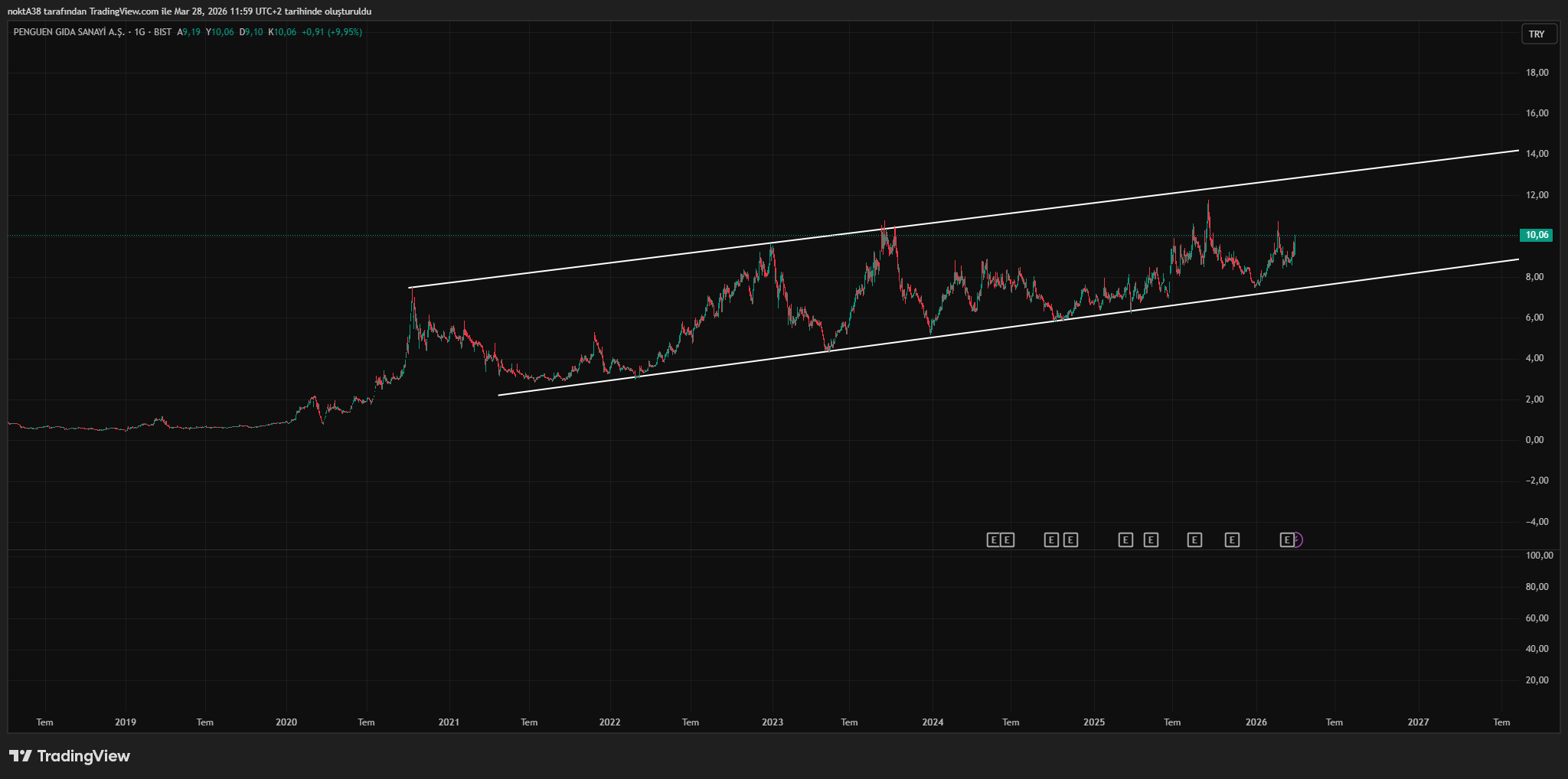 #pengd soruldu arkadaşlar bu senette olasi bir oparasyon olabilir nedenine gelince tahta sahibinin son haftalarda fazla mal alması dikkat cekici ve trend yükselen kanal icinde gidip geliyor 9,80 altı günlük kapanışlarda stoplu takip edilebilir gibi duruyor