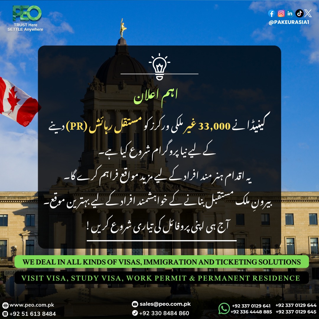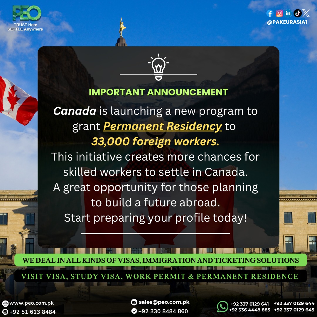 #PEO #CanadaImmigration #PermanentResidency #WorkInCanada #StudyAbroad #VisaConsultant #ImmigrationServices #CanadaPR #SkilledWorkers #FutureAbroad #OverseasOpportunities #PakistanToCanada #VisaExperts