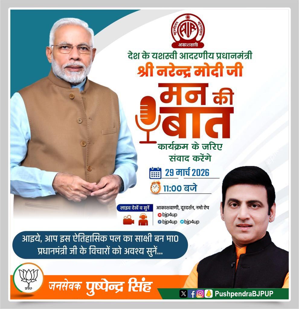 @PMOIndi@a,@mannkibaat@AkashvaniAI@R,@BJPLive@PushpendraBJPUP