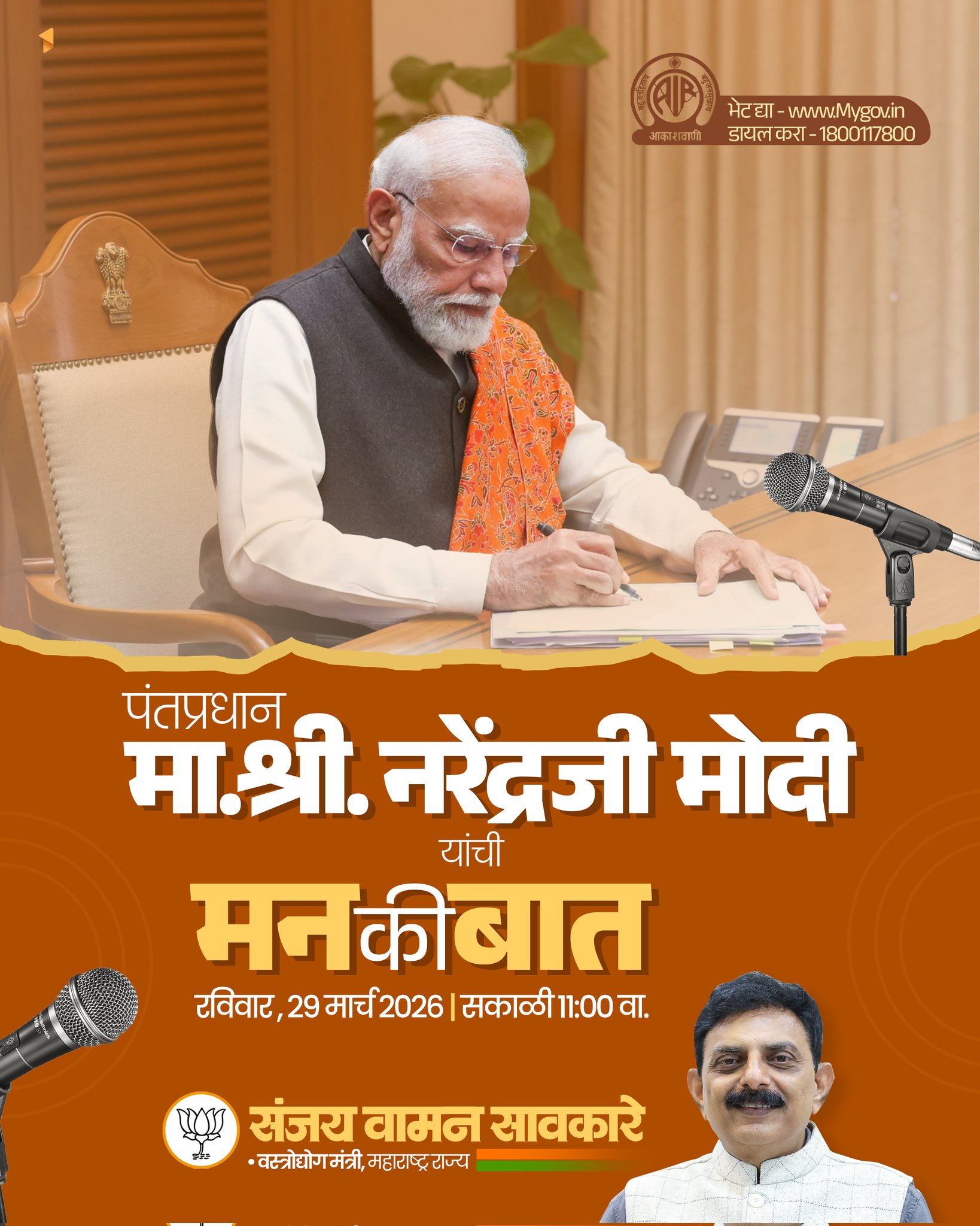 “#PM रविवार:29 मार्च 2026 को प्रातः 11:00 बजे #आकाशवाणी से #मन_की_बात कार्यक्रम (132 वें एपीसोड)के माध्यम से अपने विचार साझा करेंगे।@”