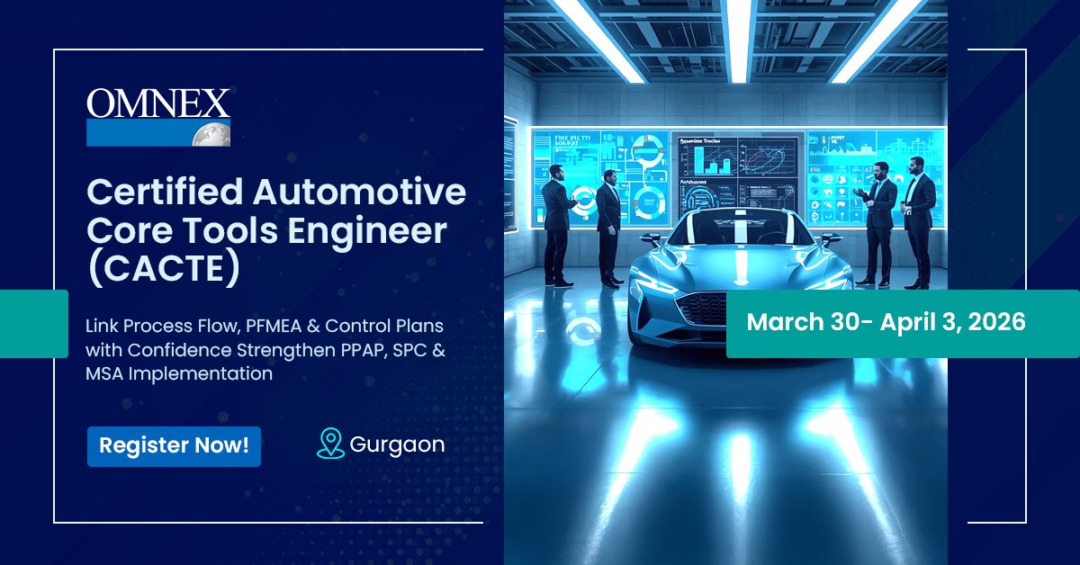 Omnex India @omnexindia · Mar 20 Build expertise in Automotive Core Tools with CACTE Training. Master #APQP, #PPAP, #FMEA, #SPC & #MSA for stronger quality and process control. 📅 Mar 30–Apr 3, 2026 �hubs.li/Q047FPSQ0fb #AutomotiveQuality #SupplierQualithubs.li/Q047FPHz05bA 5