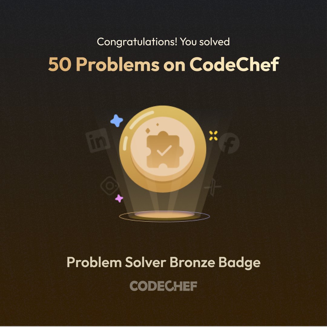 Solved 50 problems and earned a Bronze Medal 🥉