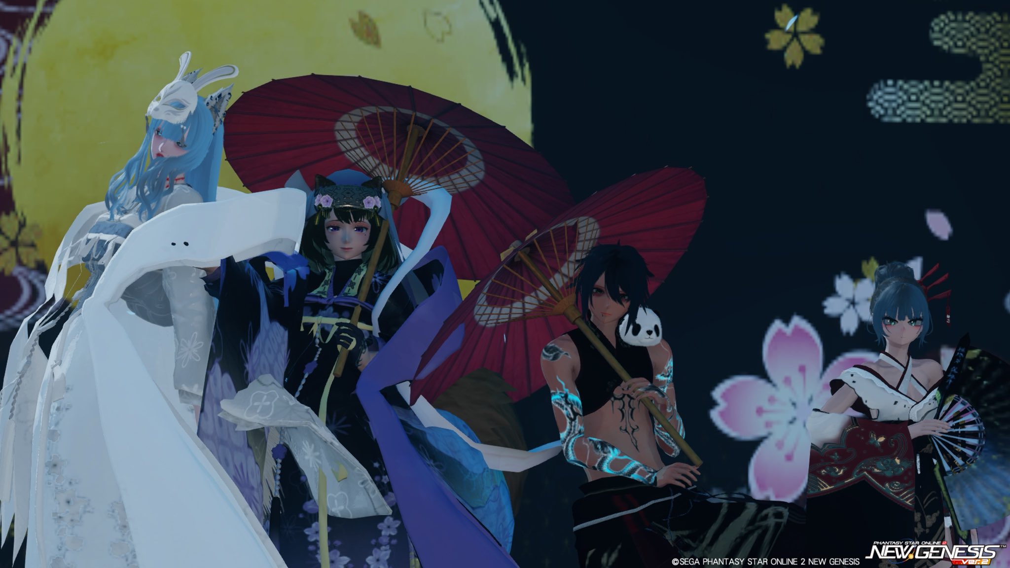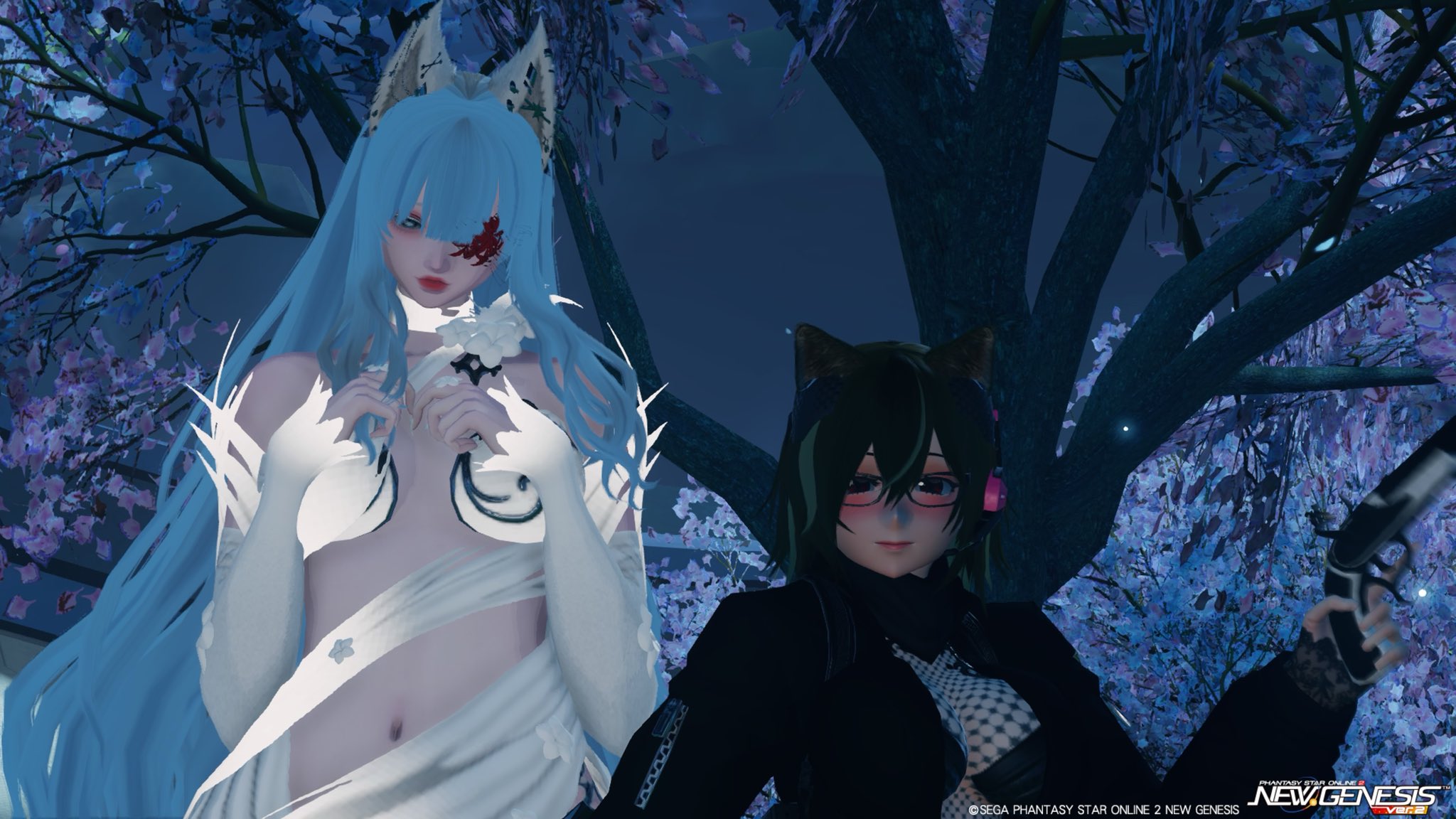 氷鉋 ship8 @HIGANO00 · 6h #PSO2NSG_SS #メンテの日じゃないけどssを貼る こんばんがのぉん🌸 毎日SS330日目🌕 新スク衣装和装に 夜桜をトッピング∩^ω^3U 2 12 85