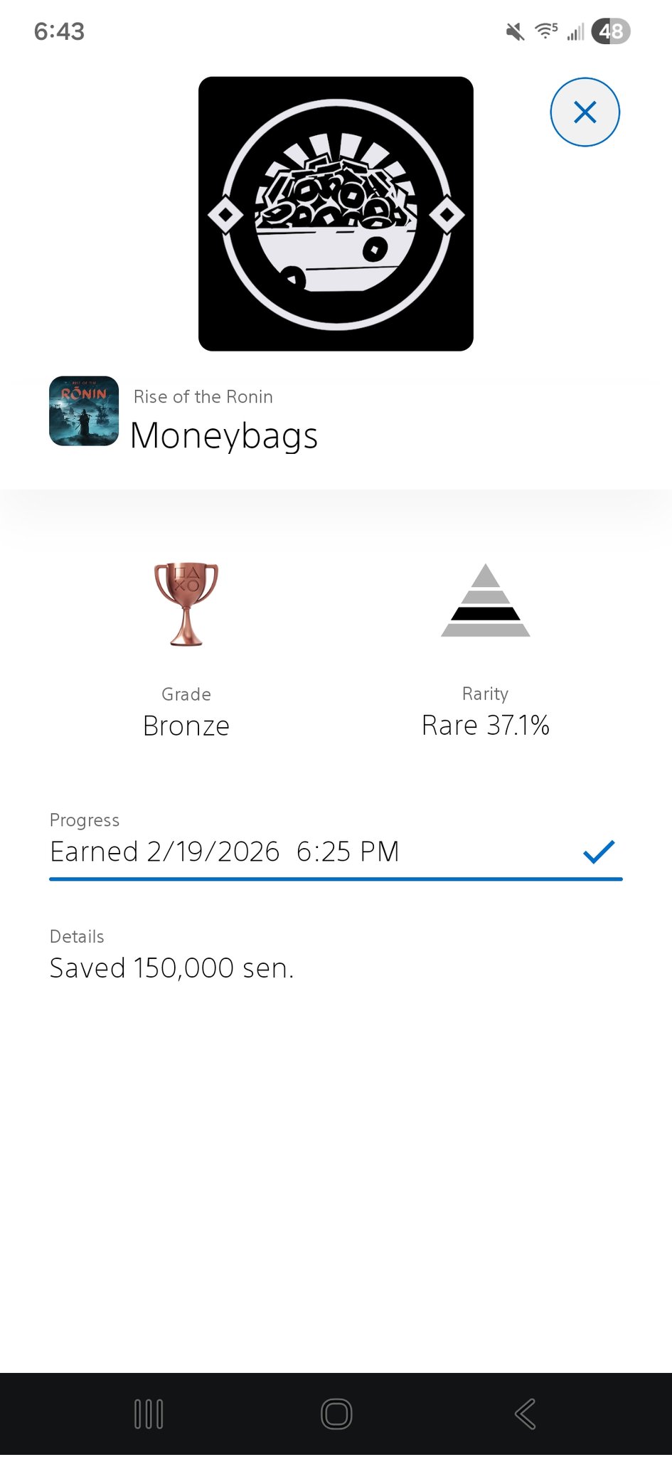 GothamLounge @chancler_joe · Mar 5 Hey guys, I earned a trophy in Rise Of The Ronin Episode #22 #PlayStationTrophy #PSTrophy #trophy #trophyhunter #trophyhunting #riseoftheronin Photo Courtesy Of Amelia James 1 19