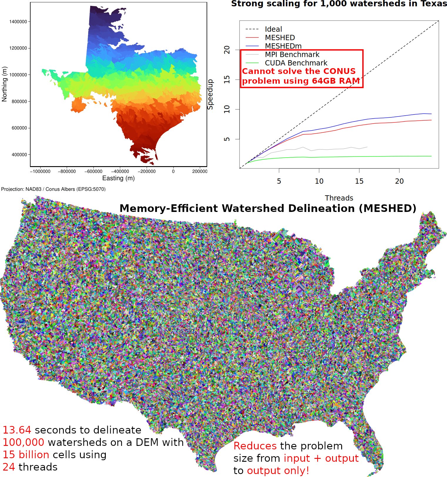 The Memory-Efficient #WatershedDelineation (MESHED) #OpenMP #ParallelAlgorithm is released under GPL v3 as part of the Memory-Efficient I/O-Improved Drainage Analysis System (MIDAS).