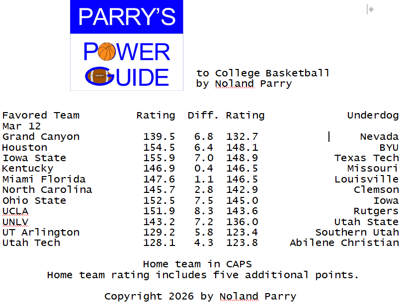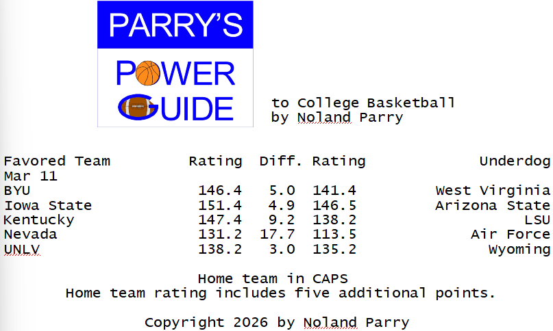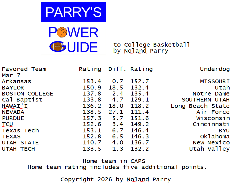 Noland Parry @Noland_Parry · Mar 3 #ParrysPowerGuide to #CBB Some games today @CBSSportsCBB @CBBonFOX @NCAA @espn #BYUSN 64