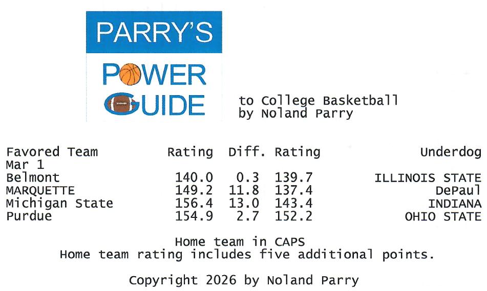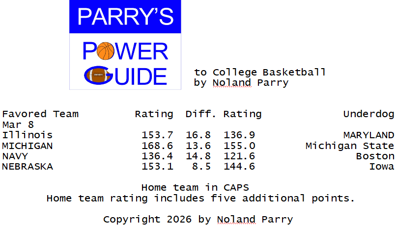 Noland Parry @Noland_Parry · Mar 1 #ParrysPowerGuide to #CBB Some games today @CBSSportsCBB @CBBonFOX @NCAA @espn 99