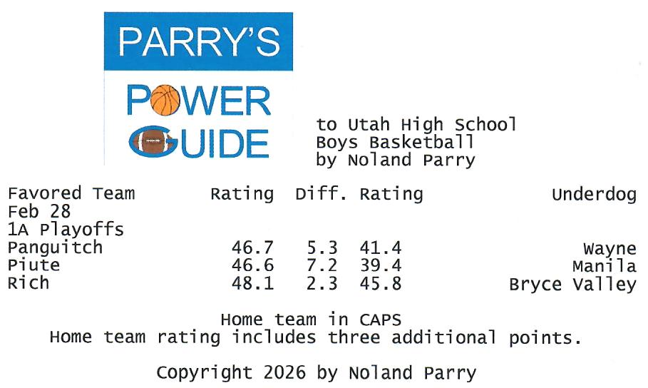 Noland Parry @Noland_Parry · Feb 28 #ParrysPowerGuide to #UTHSBB Games today @UHSAAinfo @desnewssports @sltribsports @heraldextra @STGnewsSports 41