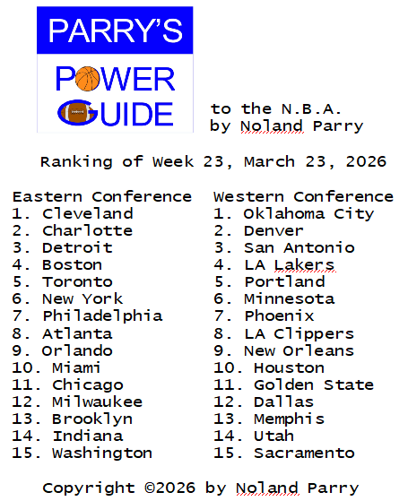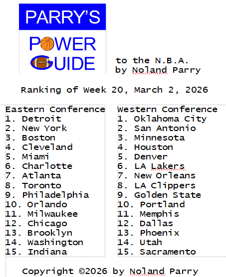 Noland Parry @Noland_Parry · Mar 2 #ParrysPowerGuide to the @NBA This weeks ranking @ESPNNBA @NBAonNBC @NBATV 52