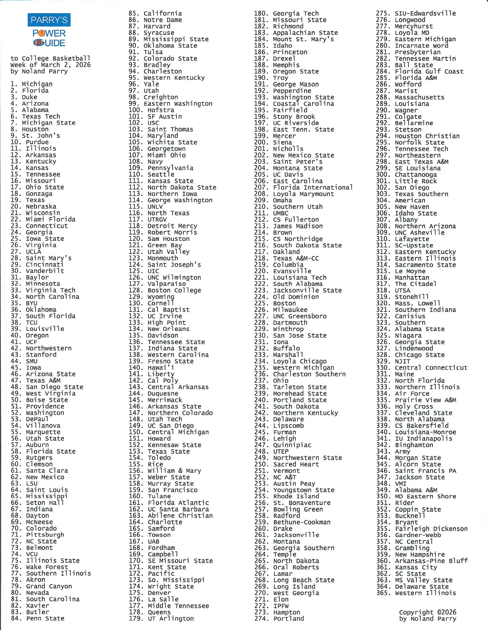 Noland Parry @Noland_Parry · Mar 9 #ParrysPowerGuide to #CBB This weeks ranking @CBSSportsCBB @NCAA @CBBonFOX @espn #BYUSN 71