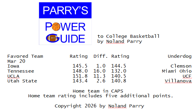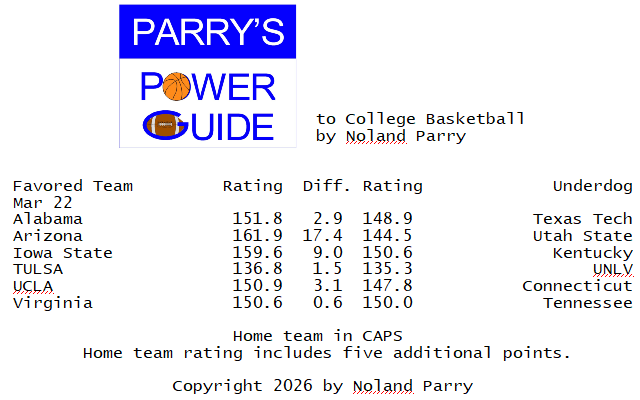 Noland Parry @Noland_Parry · Mar 20 #ParrysPowerGuide to #CBB Some games today @CBSSportsCBB @CBBonFOX @NCAA @espn 53