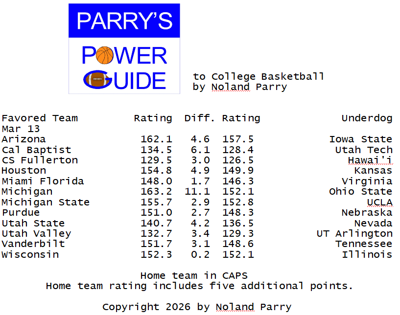 Noland Parry @Noland_Parry · Mar 13 #ParrysPowerGuide to #CBB This weeks ranking @CBSSportsCBB @NCAA @CBBonFOX @espn #BYUSN 101