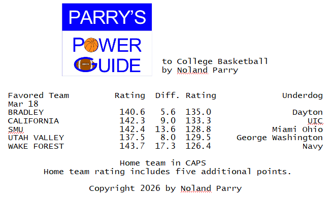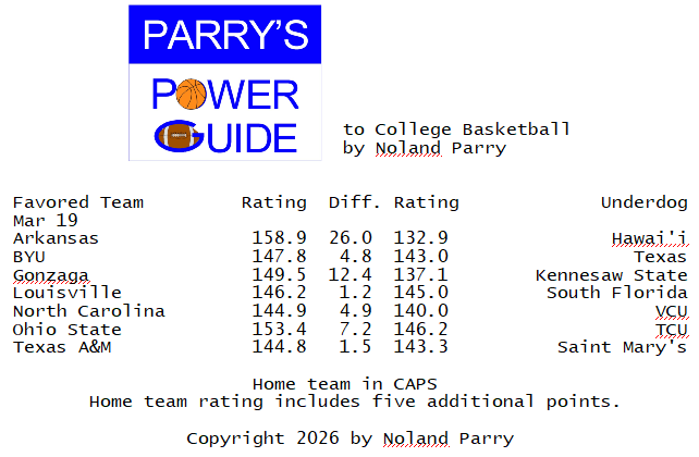 Noland Parry @Noland_Parry · Mar 19 #ParrysPowerGuide to #CBB Some games today @CBSSportsCBB @CBBonFOX @NCAA @espn #BYUSN 57