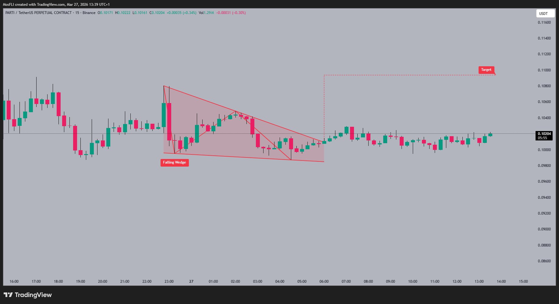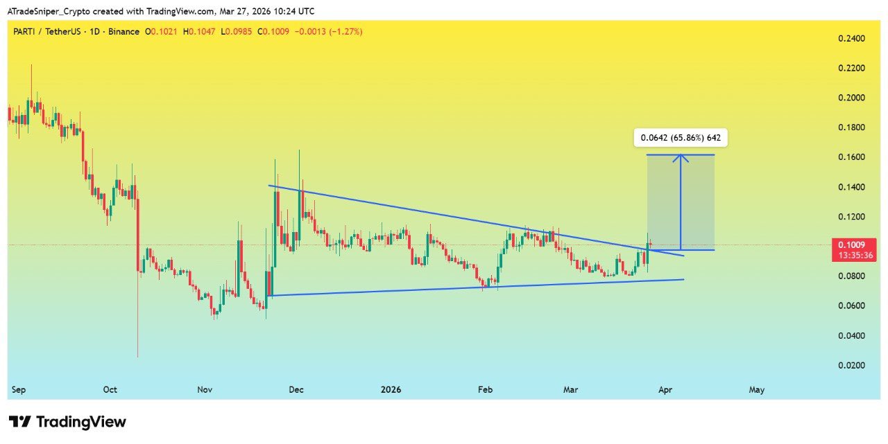 #PARTI is consolidating 🧘♂️ after breaking out of a falling wedge pattern. The price action has been choppy 🌊 but the bulls are trying to hold the breakout level. The next target 🎯 f