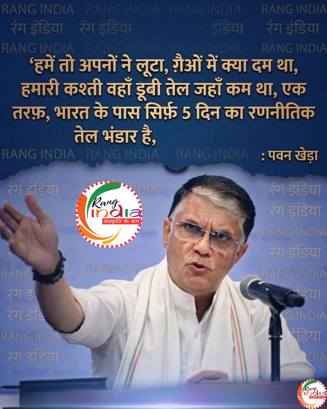 पवन खेड़ा का X पोस्ट वायरल: सरकार पर तंज- 'अपनों ने ठगा, गैरों का क्या बस चले। तेल की कमी में डूबी कश्ती हमारी।' सिर्फ 5 दिन का भारत का रणनीतिक तेल स्टॉक, रूस भी सप्लाई रोकने की धमकी दे रहा!