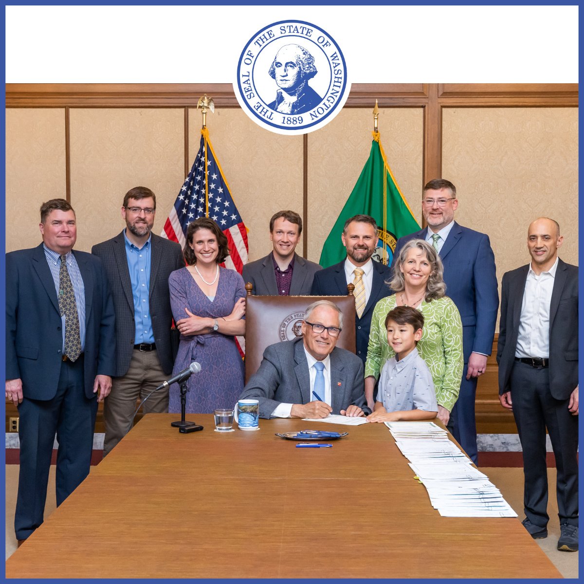 The team from our West region--including a member's son--were excited to witness the signing of the state of Washington's HB 1777, a bill that promotes the use of #performancebasedcontracting for #energyservices & equipment, by Governor Jay Inslee. Go to: hubs.ly/Q01P7_fM0