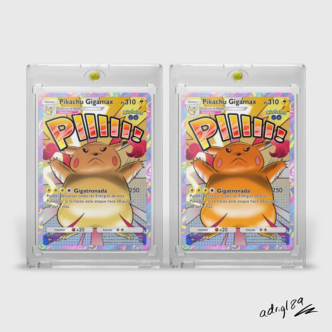 Pikachu Gigamax hace saltar chispas al estilo Mega Attack Rare gritando su mítico "PIIII!". 🎨✨