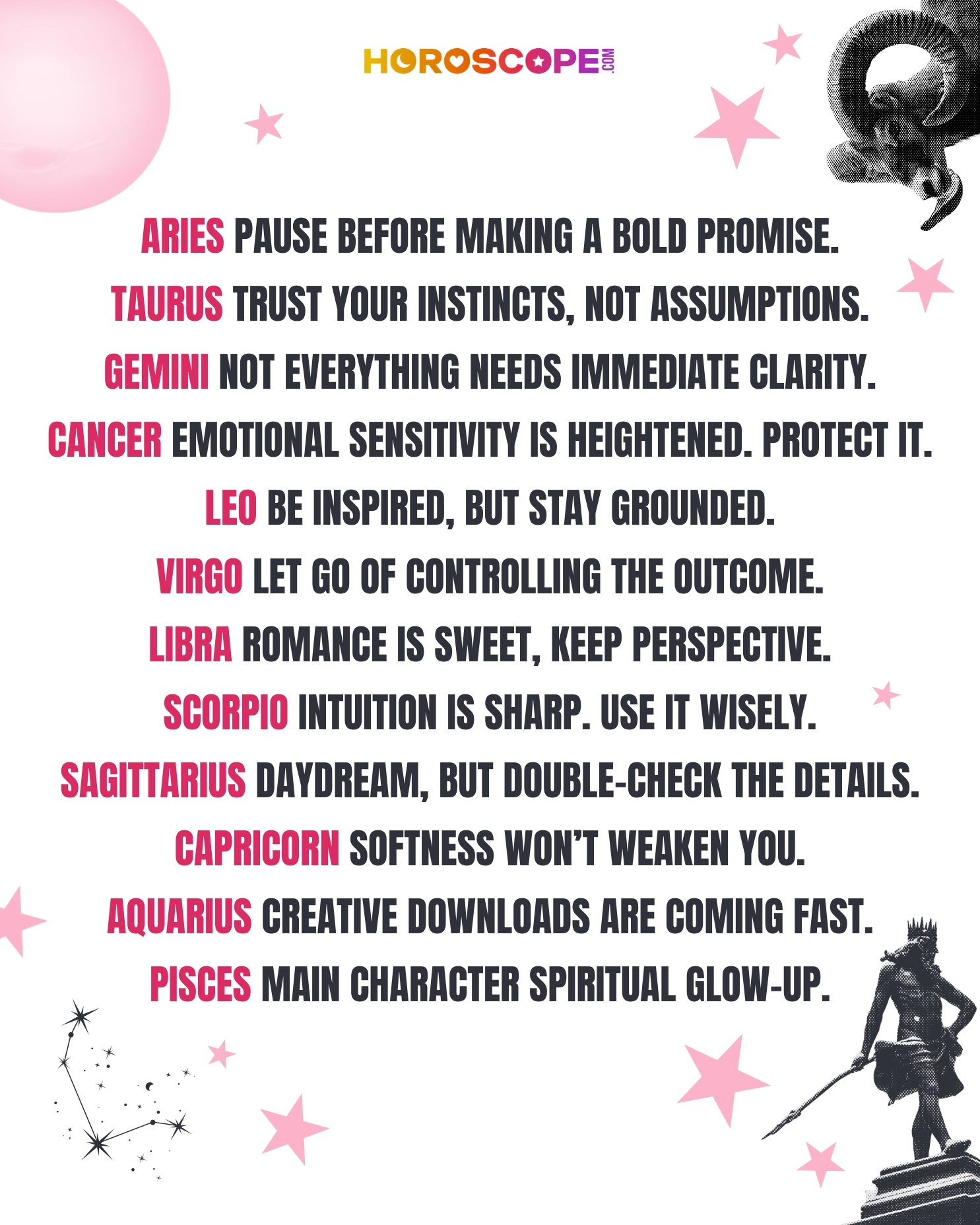 Horoscope.com @horoscopedotcom · 5d Swipe to see your vibe when the sun conjuncts Neptune. Beautiful for creativity but risky for assumptions. Are you inspired or romanticizing? 💫 Get your horoscope today:bit.ly/3NoqpZUw #SunConjunctNeptune #Astrology #PiscesEnergy #ZodiacSigns #MarchTransitsC 30