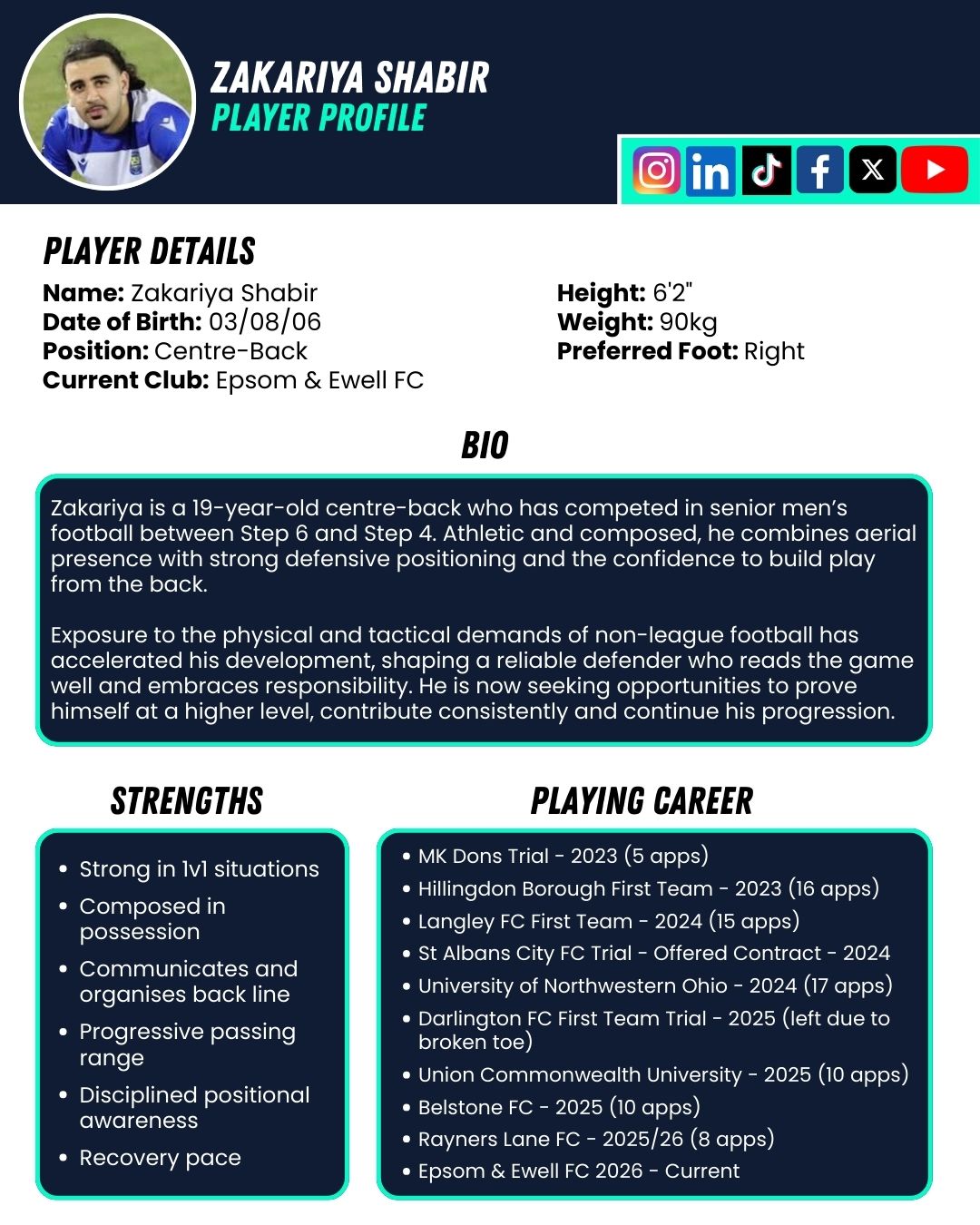 📩 DM or contact zakshabirfootball@gmail.com for trials