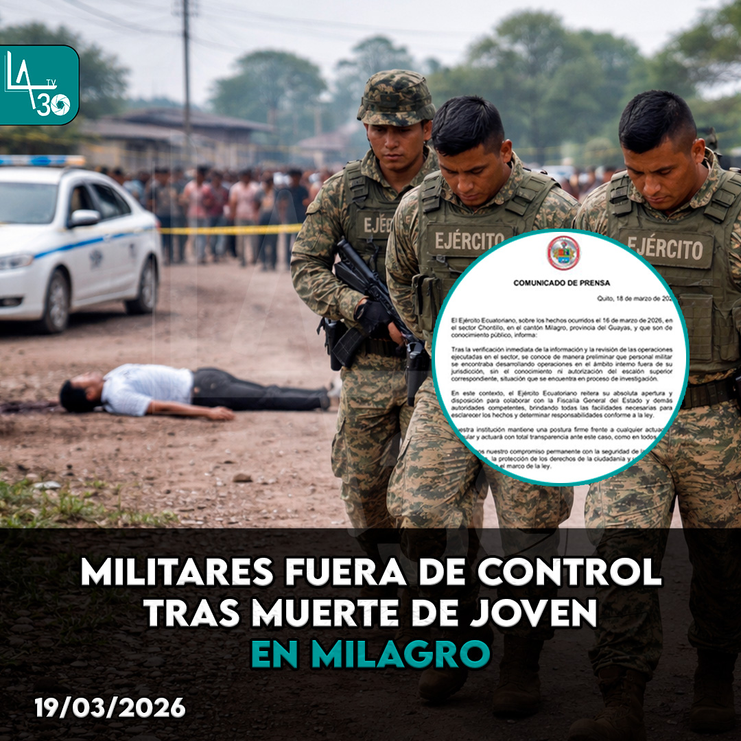 #Guayas | El Ejército informó que militares implicados en la muerte de un joven en Milagro actuaban sin autorización y fuera de su zona. Caso bajo investigación.