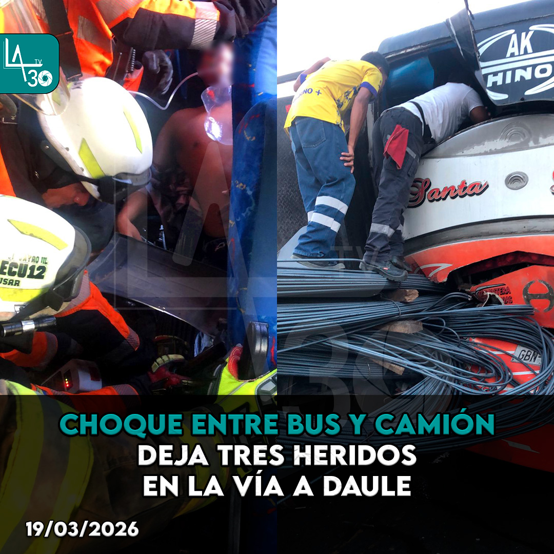 #Guayas | Siniestro vial en el km 22 vía a Daule, sector Capeira, sentido Guayaquil. Bus y vehículo de carga colisionaron; tres personas trasladadas a casas de salud.