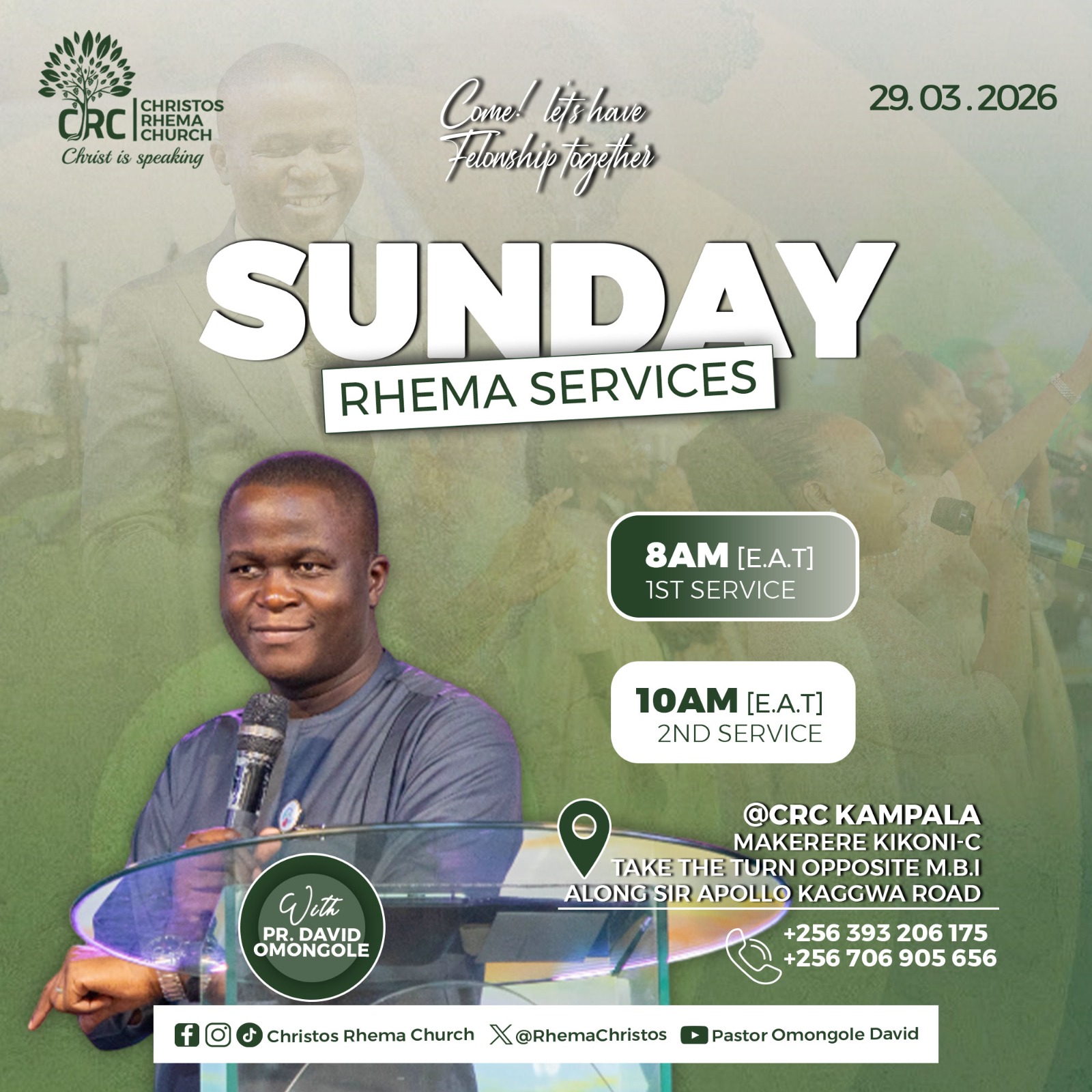 You are dearly invited for services tomorrow at our church in Makerere Kikoni C
