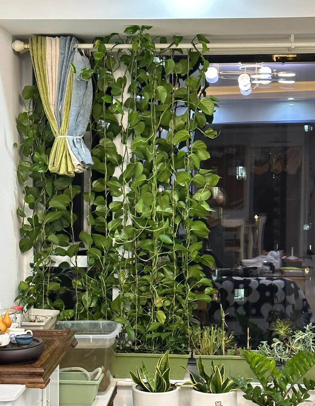 Keep your pothos happy! Bright indirect light, water when soil feels dry (2-3x/week in warm weather), and trim yellow leaves. Easy care = lush vines! #PlantParent#PothosCare
