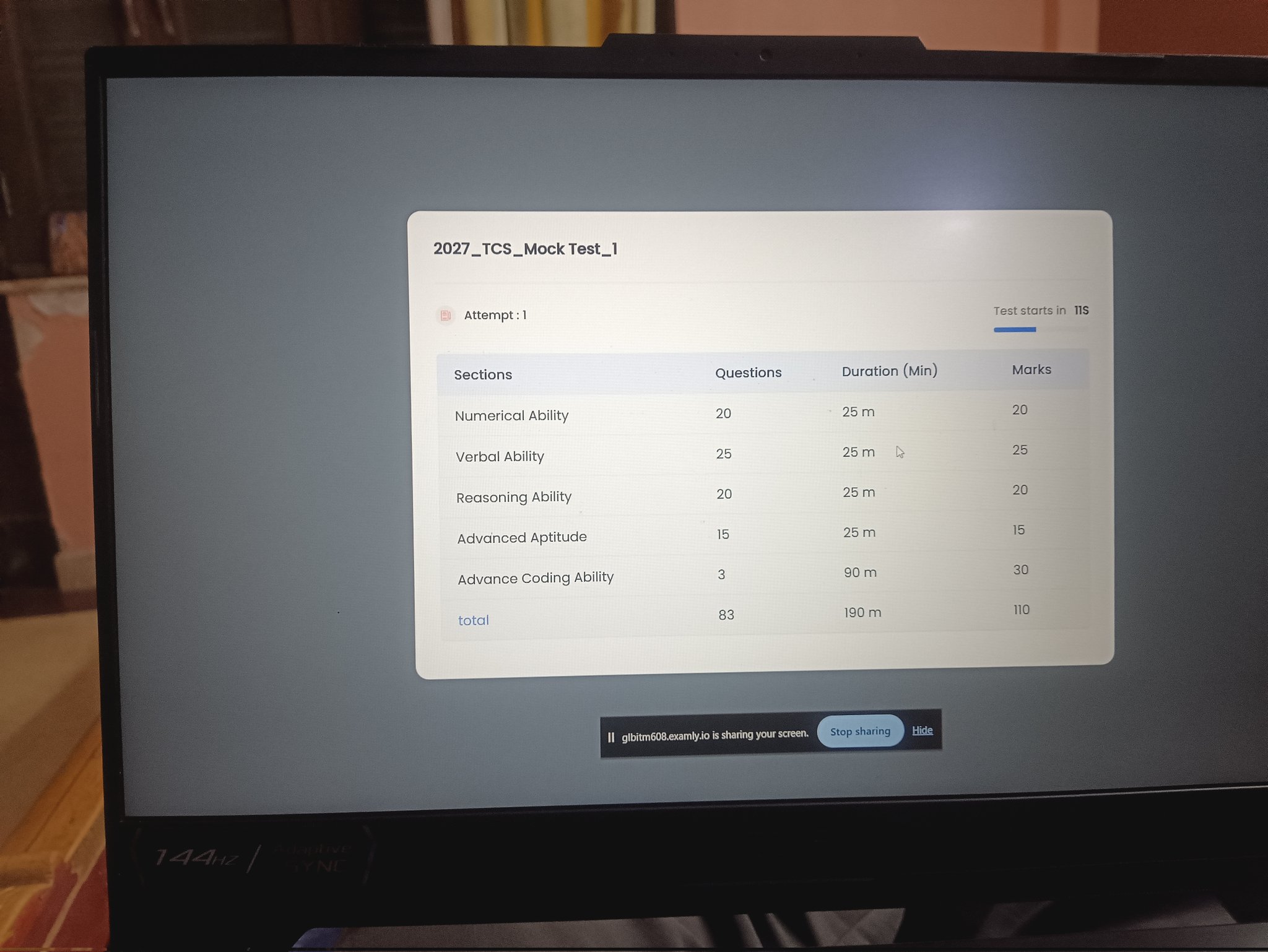 20th January - Appeared for a practice online assessment @TCS