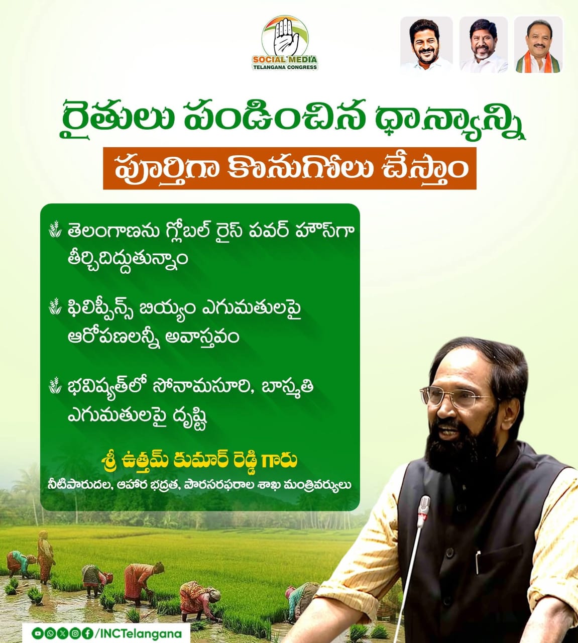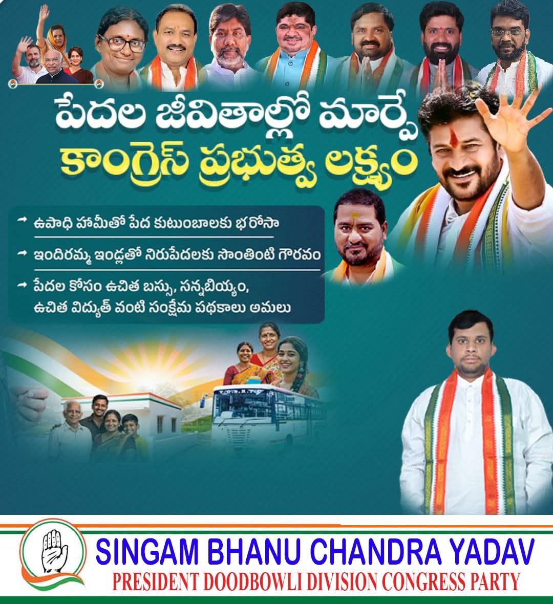Congress government aims to change the lives of the poor Reassurance to poor families with job guarantee Indiramma houses to give the poor the dignity of their own homes Implementation of welfare schemes like free buses, rice, free electricity for the poor