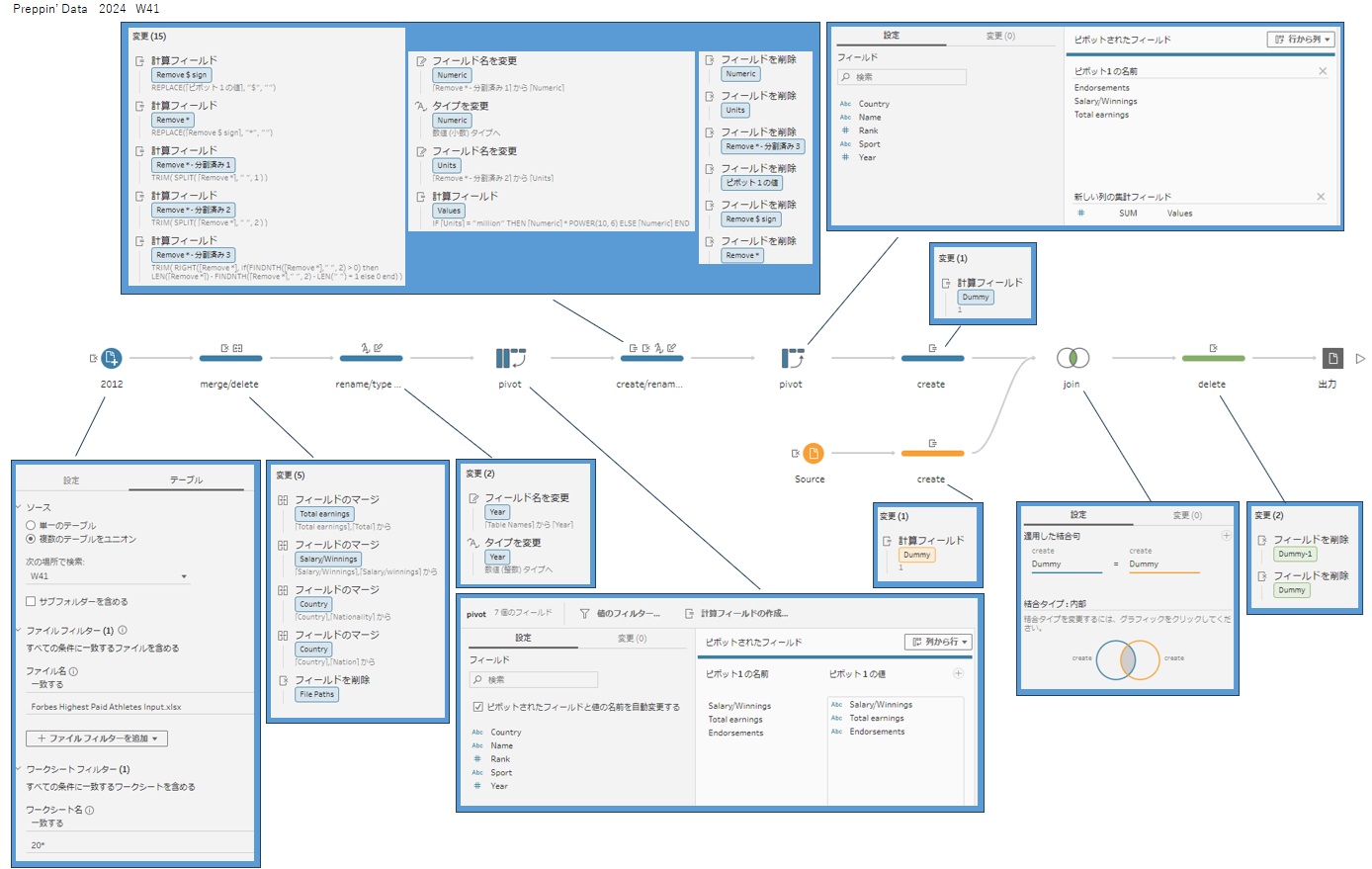 Masa Hamamo @05_hamah · Jan 9 #PreppinData 2024: Week 41 Forbes Highest Paid Athletes Thank you @Datajedininja, @JennyMartinDS14 & @TomProwse1 学び ・3項目を1度にまとめて処理するためにピボットする考え方 ・金額の数値と単位の文字列に分けて金額を計算する(W19の復習) #Tableau PD2024_W41_20260110 1 7 209