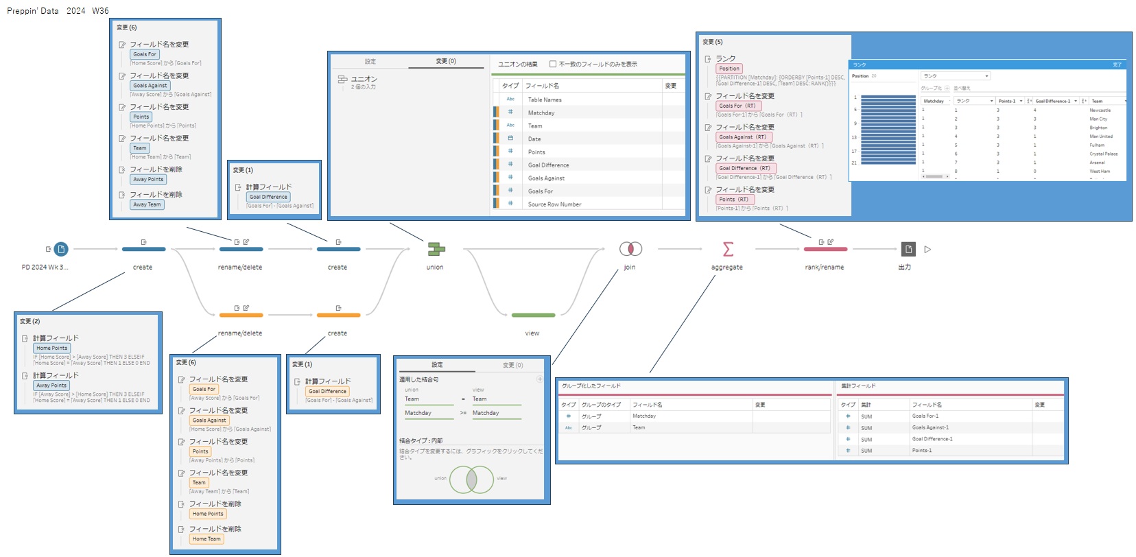 Masa Hamamo @05_hamah · Feb 27 #PreppinData 2024: Week 48 - Cross Sport League Table Ranks Thank you @Datajedininja, @JennyMartinDS14 & @TomProwse1 学び ・ユニオンで不一致のフィールドをマージすると操作が残らないので、ユニオン前に列名修正するか、ユニオン後にマージする方がよい #Tableau PD2024_W48_20260228 1 5 239