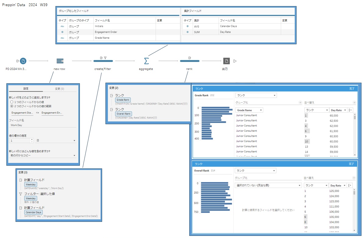 Masa Hamamo @05_hamah · Dec 26, 2025 #PreppinData 2024: Week 39 Preppin' Consultancy Ranks Thank you @Datajedininja, @JennyMartinDS14 & @TomProwse1 学び ・週末の判定はDATENAMEにより日付の曜日を取得することで可能 ・集計フィールドは初期設定がSUMなので、要件を確認して設定する #Tableau PD2024_W39_20251227 1 5 235