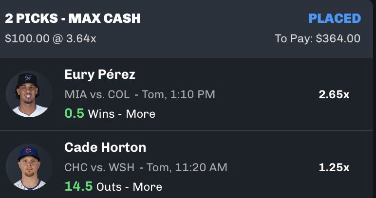Cade Horton should not go under 5 Innings tmr unless he wets the bed.