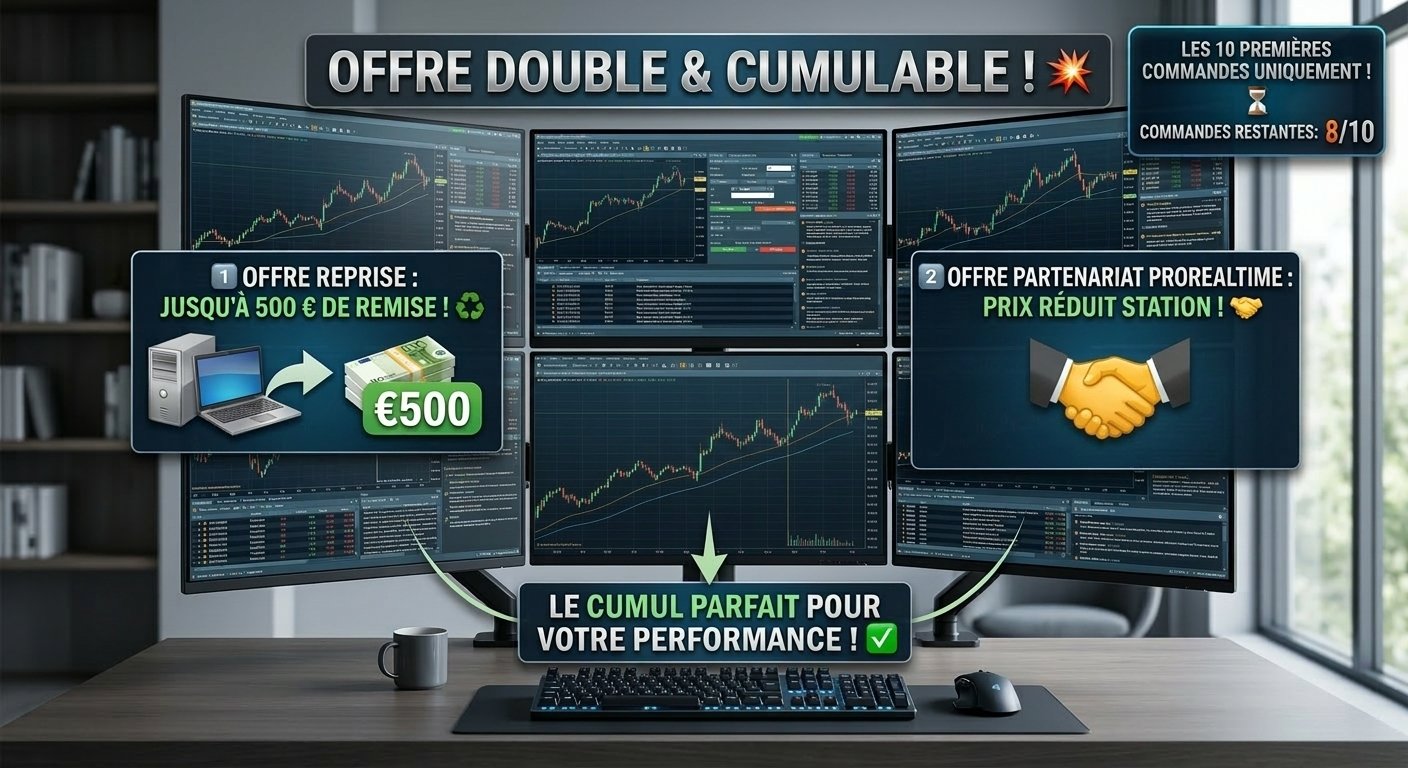 1️⃣Jusqu'à 500€ de reprise sur votre ancien matériel 2️⃣Station à prix réduit (Partenariat ProRealTime) CUMULABLE !