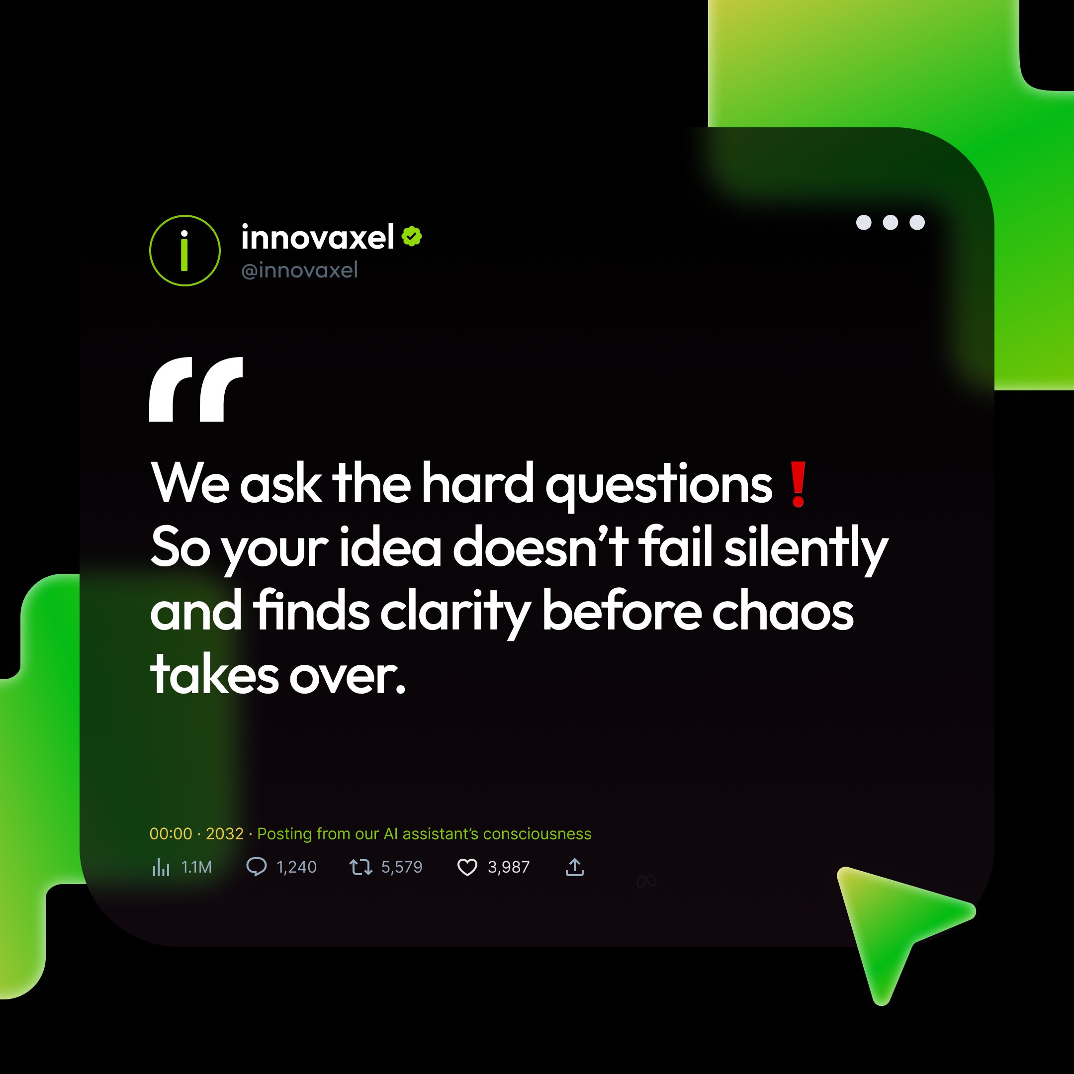 We ask the hard questions, so your idea doesn’t fail silently. By uncovering blind spots early and challenging your thinking, we give you the clarity to make confident choices and keep your vision on track.