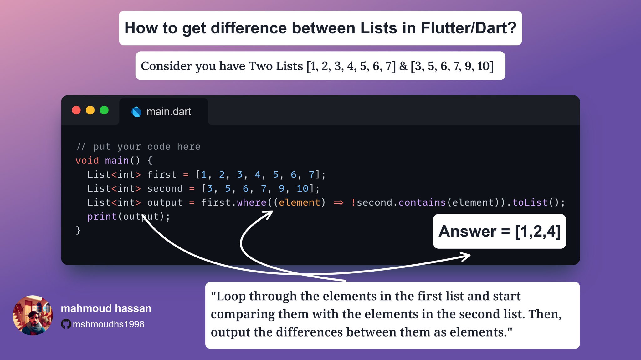 سؤال برمجي : لو عندك two lists وعاوز تقارن بينهم مثلًا وتخرج العناصر المختلفة بينهم هتعمل ايه 😅