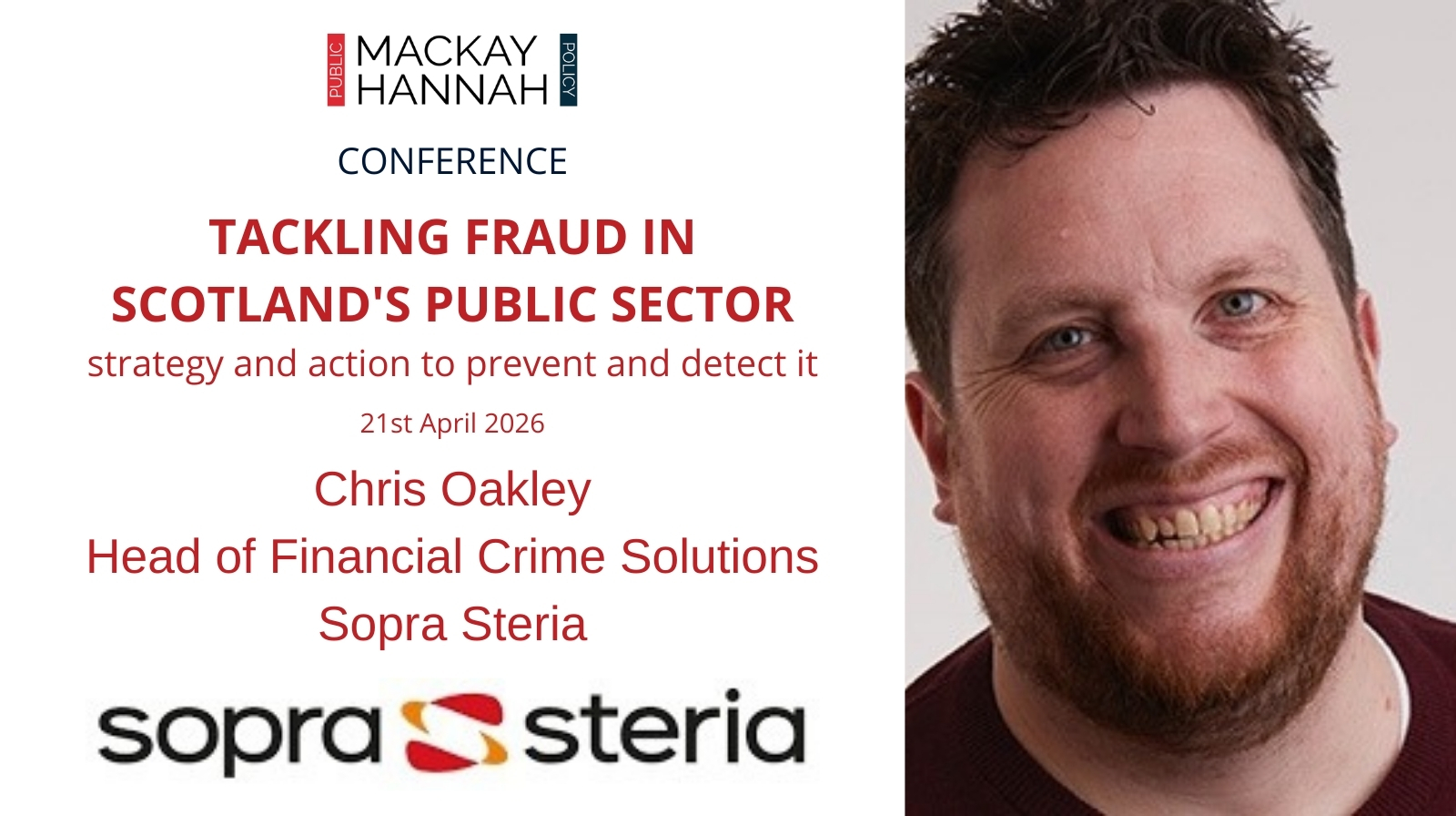 Chris Oakley, Head of Financial Crime Solutions, Sopra Steria, will be looking at data-driven detection: using analytics & technology to identify and reduce fraud