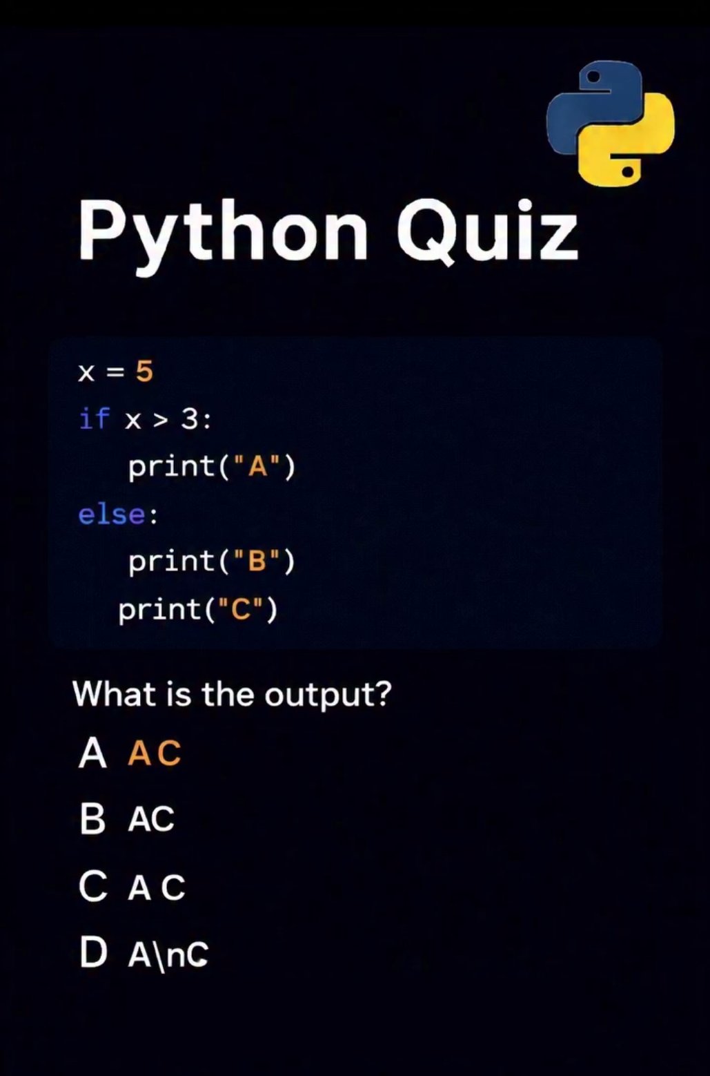 #Python #PythonQuiz #PythonProgramming #CodingQuiz #CodingChallenge #ProgrammingPuzzle #TestYourKnowledge #DailyCodeQuiz #PythonTipsvDGm