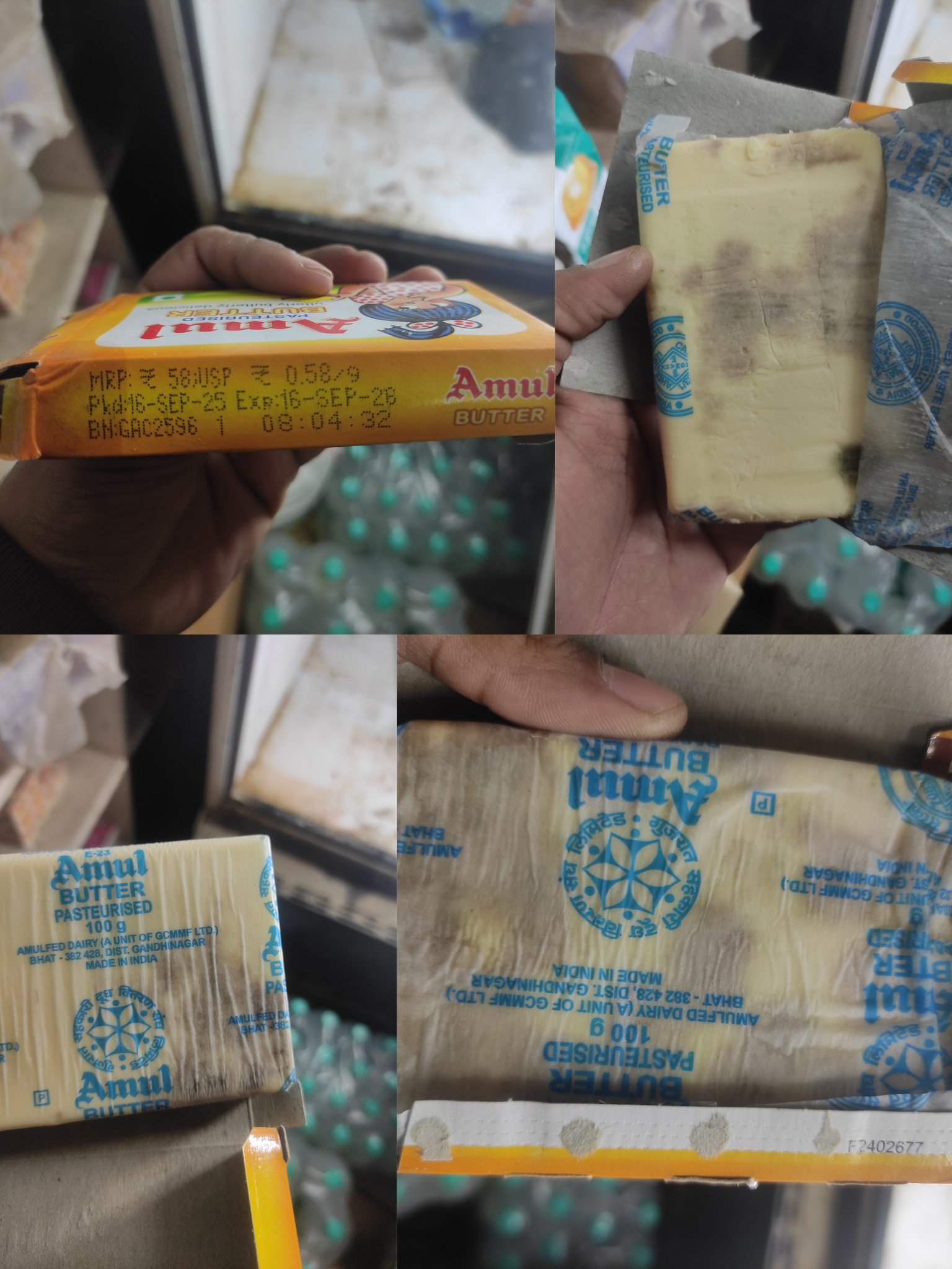 Bought Amul Butter from a local shop—it's not expired, yet found it damaged.