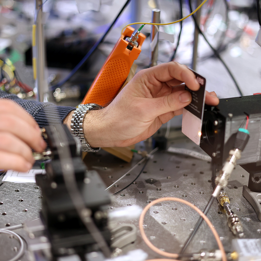🔬 Lab Notes: In a Yale quantum optics lab, Bülent Kanmaz, Sayan Ghosh, and team use light to control a tiny mechanical resonator that can act as a quantum memory – combining mechanical stability with optical speed to enable future quantum networks.