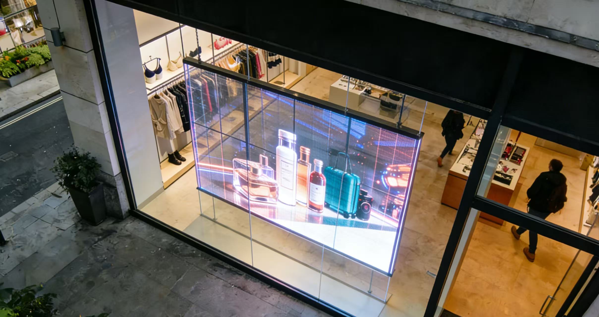 LED transparent screen on shop window – bright, clear, and elevates your storefront vibe instantly!