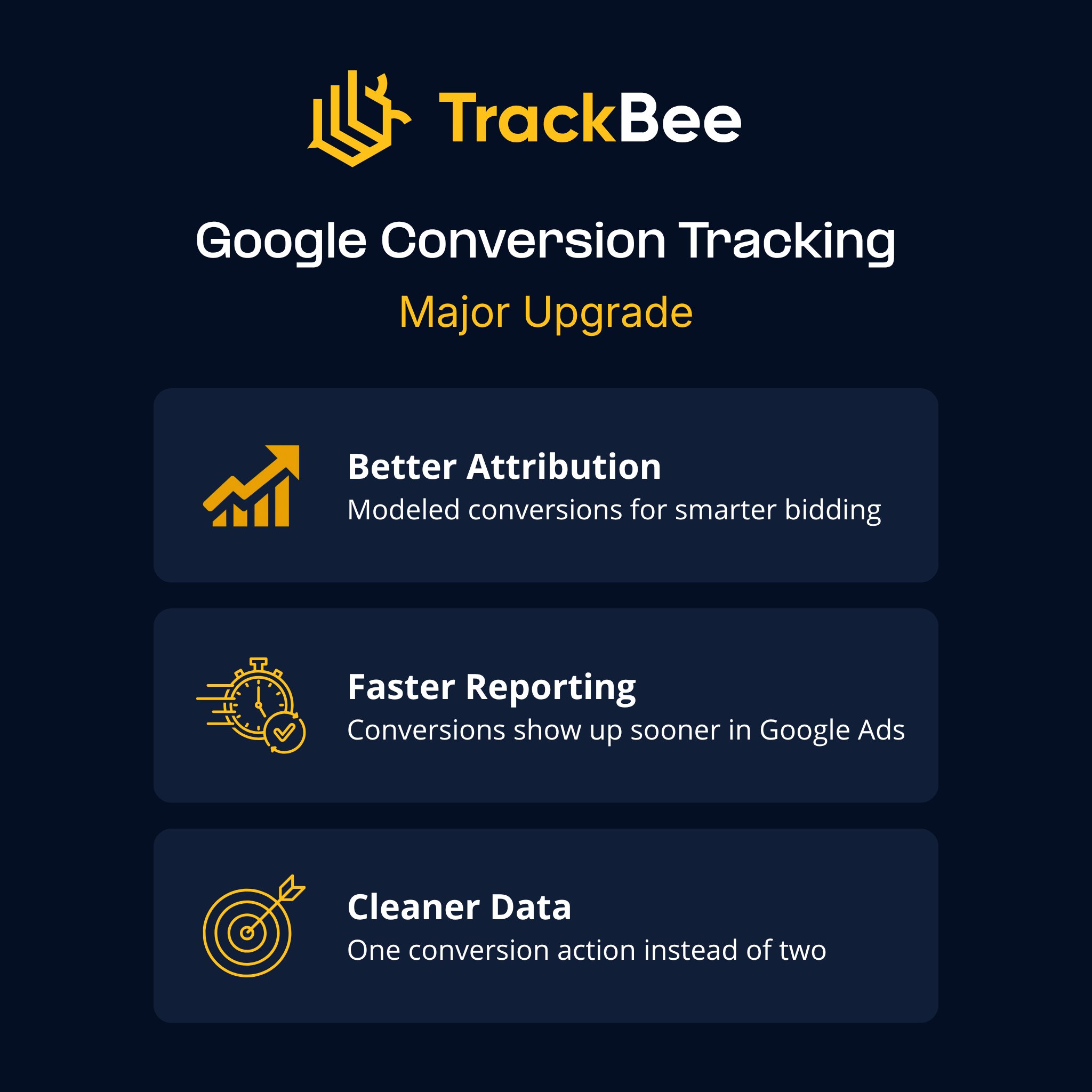 Faster reporting - Conversions show up in your Google Ads account quicker than before.