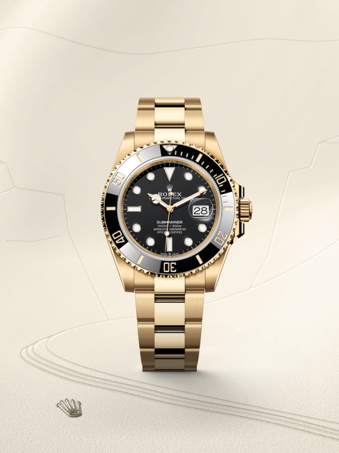 The reference among divers' watches. The Rolex Submariner Date in 18 ct yellow gold, 41 mm case, black dial, an Oyster bracelet.